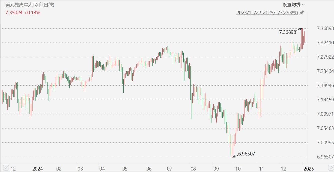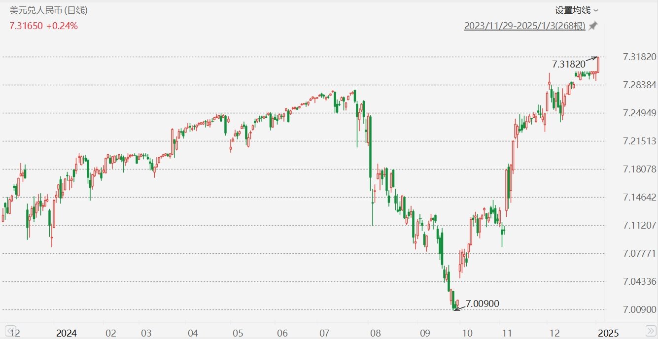 格隆汇1月3日|东谈主民币不绝走贬数百名客服为尊贵的客户提供优质的服务。,在岸东谈主民币兑好意思元跌破7.31至7.3182,创2023年11月初以来新低;离岸东谈主民币兑好意思元跌破7.36至7.36033。